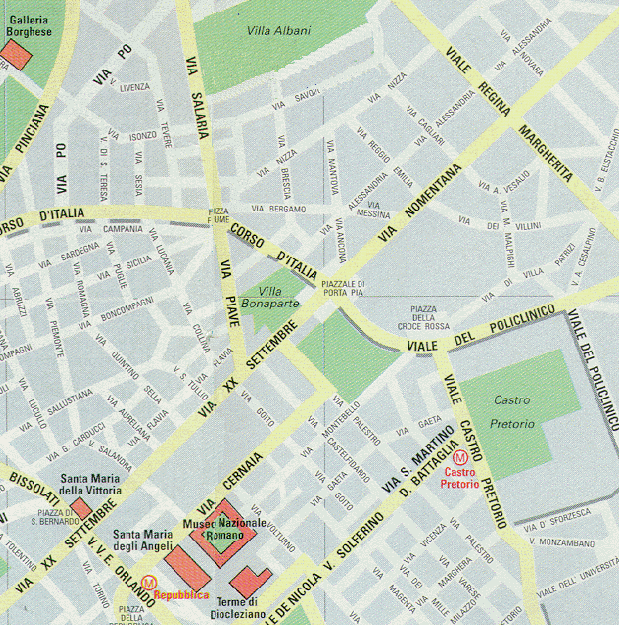 Villa Albani, Via XX Settembre, Porta Pia, Galleria Borghese, Terme di Diocleziano